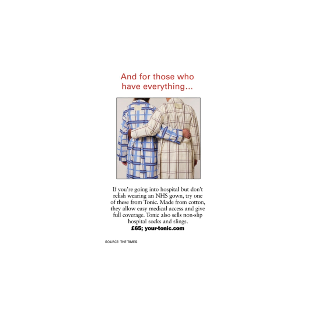 "If you're going into hospital but don't relish wearing an NHS gown, try one from TONIC."